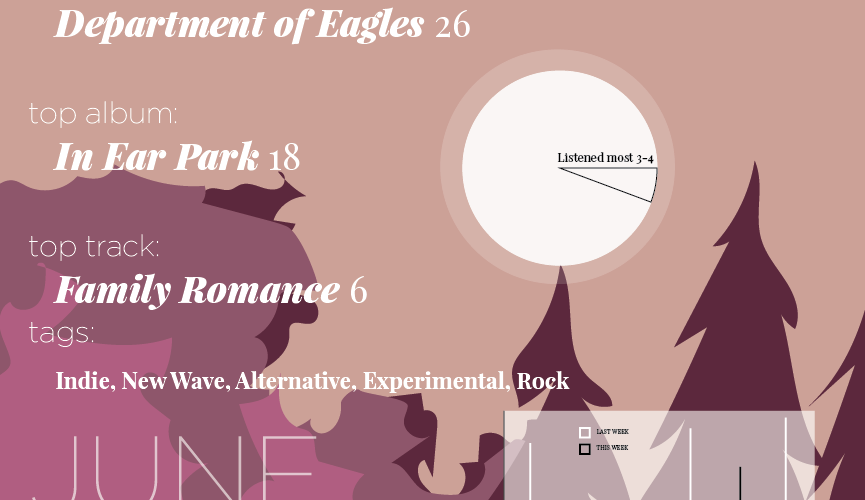 I knew that I wanted a personal project outside of work and school projects to do this summer. I chose to track what I listen to so that I would feel pushed to try new music and because I was curious about how much I listened to different types of music.